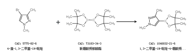 2.通過4-溴-1,3-二甲基-1H-吡唑和聯(lián)硼酸頻那醇酯合成1,3-二甲基-1H-吡唑-4-硼酸頻哪醇酯
