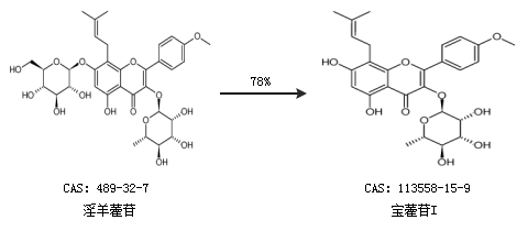 1.通過淫羊藿苷合成寶藿苷I,收率約78%;
