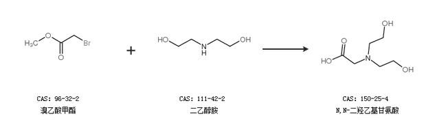 1.通過溴乙酸甲酯和二乙醇胺合成N,N-二羥乙基甘氨酸