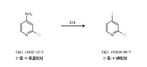 2.通過2-氯-4-氨基吡啶合成2-氯-4-碘吡啶,收率約61%;