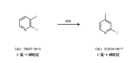 1.通過2-氯-3-碘吡啶合成2-氯-4-碘吡啶,收率約95%;