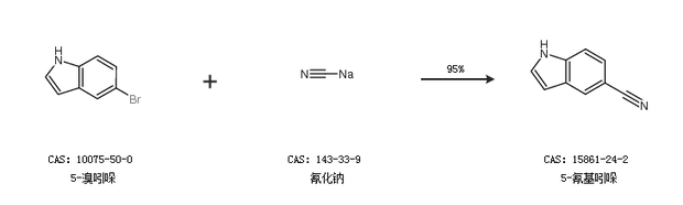 1.通過(guò)5-溴吲哚和氰化鈉合成5-氰基吲哚,收率約95%;