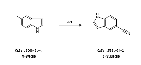2.通過(guò)5-碘吲哚合成5-氰基吲哚,收率約94%;