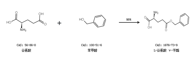 2.通過(guò)谷氨酸和苯甲醇合成L-谷氨酸 γ-芐酯,收率約98%;