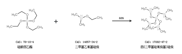 2.通過硅酸四乙酯和二甲基乙氧基硅烷合成四[二甲基硅氧烷基]硅烷,收率約68%;