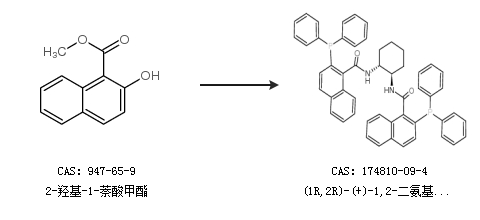 2.通過(guò)2-羥基-1-萘酸甲酯合成(1R,2R)-(+)-1,2-二氨基環(huán)己烷-N,N′-雙(2-苯基膦-1-萘?;?
