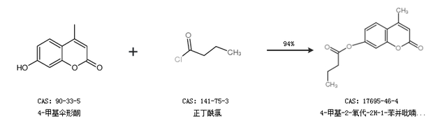 1.通過4-甲基傘形酮和正丁酰氯合成4-甲基-2-氧代-2H-1-苯并吡喃-7-基丁酸酯,收率約94%;