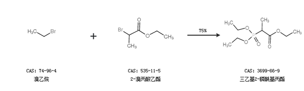 1.通過(guò)溴乙烷和2-溴丙酸乙酯合成三乙基2-膦酰基丙酯,收率約75%;