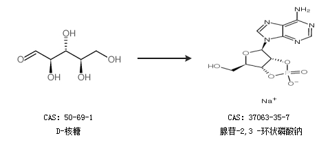 1.通過D-核糖合成腺苷-2,3 -環(huán)狀磷酸鈉