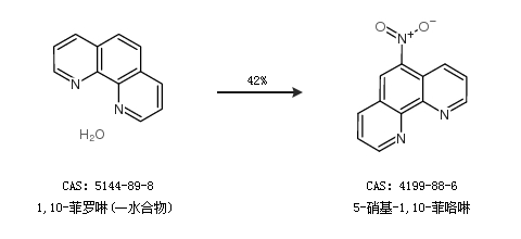2.通過(guò)1,10-菲羅啉(一水合物)合成5-硝基-1,10-菲咯啉,收率約42%;