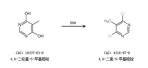 1.通過4,6-二羥基-5-甲基嘧啶合成4,6-二氯-5-甲基嘧啶,收率約89%;