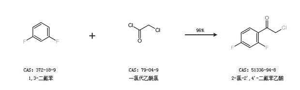 1.通過1,3-二氟苯和一氯代乙酰氯合成2-氯-2'',4''-二氟苯乙酮,收率約96%;