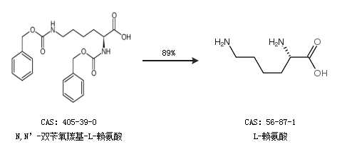 2.通過N,N’-雙芐氧羰基-L-賴氨酸合成L-賴氨酸,收率約89%;