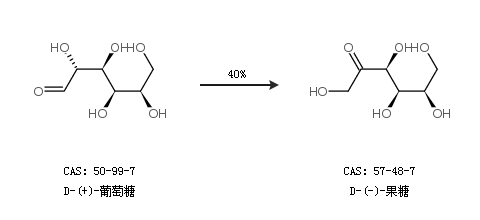 2.通過D-(+)-葡萄糖合成D-(-)-果糖,收率約40%;