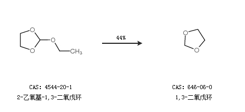 2.通過(guò)2-乙氧基-1,3-二氧戊環(huán)合成1,3-二氧戊環(huán),收率約44%;