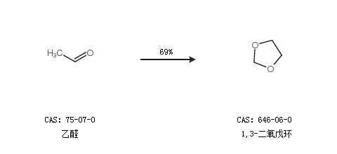 1.通過(guò)乙醛合成1,3-二氧戊環(huán),收率約69%;