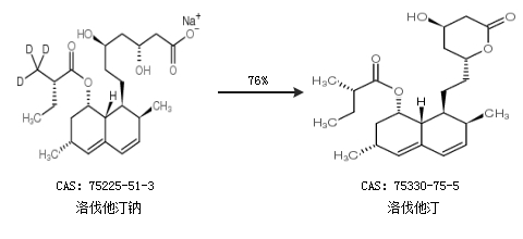 1.通過洛伐他汀鈉合成洛伐他汀,收率約76%;