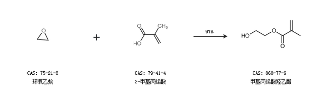 1.通過環(huán)氧乙烷和2-甲基丙烯酸合成甲基丙烯酸羥乙酯,收率約97%;