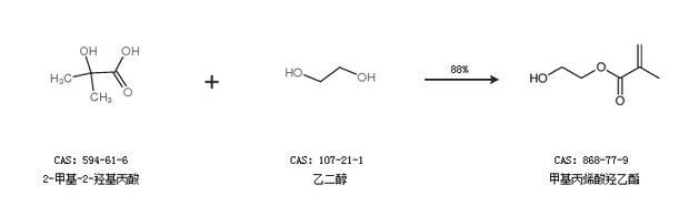 2.通過2-甲基-2-羥基丙酸和乙二醇合成甲基丙烯酸羥乙酯,收率約88%;