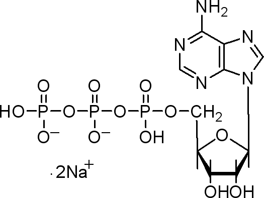 ATP disodium salt (Adenosine 5''-triphosphate disodium salt) 是體內(nèi)能量?jī)?chǔ)存和代謝的重要物質(zhì),為代謝提供能量,同時(shí)在細(xì)胞中作為輔酶發(fā)揮作用。ATP disodium salt 是免疫和炎癥中重要的內(nèi)源性信號(hào)分子。