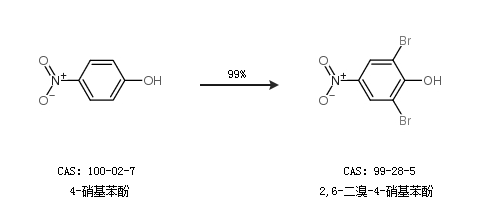 1.通過4-硝基苯酚合成2,6-二溴-4-硝基苯酚,收率約99%;