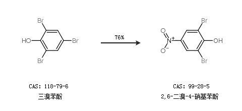 2.通過三溴苯酚合成2,6-二溴-4-硝基苯酚,收率約76%;