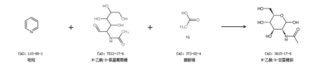 1.通過吡啶、N-乙酰-D-氨基葡萄糖和醋酸鎳合成N-乙酰-D-甘露糖胺