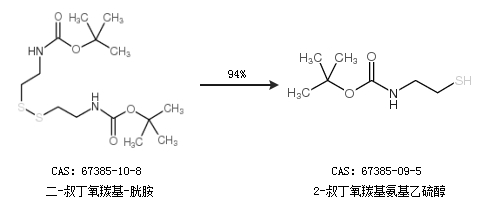 2.通過二-叔丁氧羰基-胱胺合成2-叔丁氧羰基氨基乙硫醇,收率約94%;