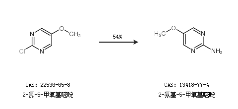2.通過(guò)2-氯-5-甲氧基嘧啶合成2-氨基-5-甲氧基嘧啶,收率約54%;