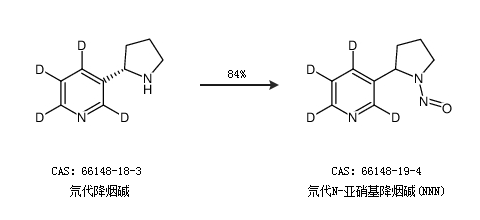 1.通過氘代降煙堿合成氘代N-亞硝基降煙堿(NNN),收率約84%;