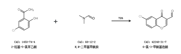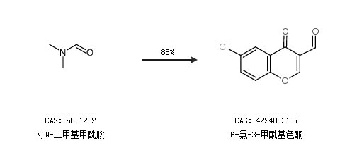 2.通過N,N-二甲基甲酰胺合成6-氯-3-甲酰基色酮,收率約88%;
