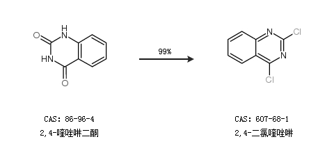 1.通過(guò)2,4-喹唑啉二酮合成2,4-二氯喹唑啉,收率約99%;