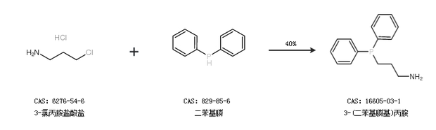 2.通過(guò)3-氯丙胺鹽酸鹽和二苯基膦合成3-(二苯基膦基)丙胺,收率約40%;