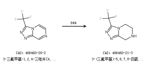 1.通過3-三氟甲基-1,2,4-三唑并[4,3-a]吡嗪合成3-(三氟甲基)-5,6,7,8-四氫-[1,2,4]三唑并[4,3-a]吡嗪,收率約84%;