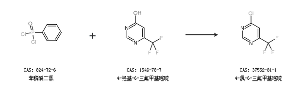 2.通過苯膦酰二氯和4-羥基-6-三氟甲基嘧啶合成4-氯-6-三氟甲基嘧啶