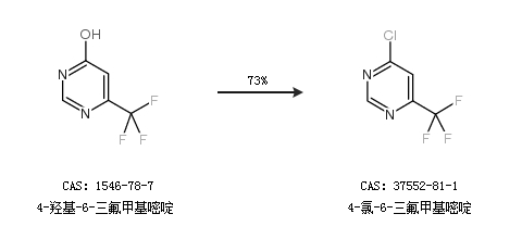 1.通過4-羥基-6-三氟甲基嘧啶合成4-氯-6-三氟甲基嘧啶,收率約73%;