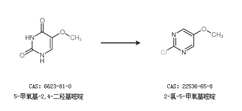 1.通過5-甲氧基-2,4-二羥基嘧啶合成2-氯-5-甲氧基嘧啶