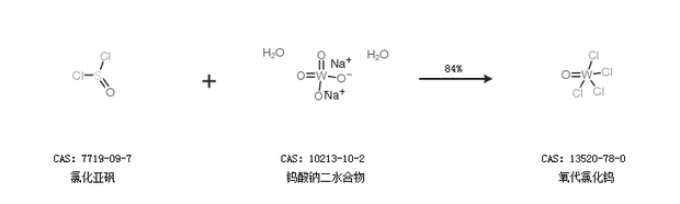 2.通過氯化亞砜和鎢酸鈉二水合物合成氧代氯化鎢,收率約84%;