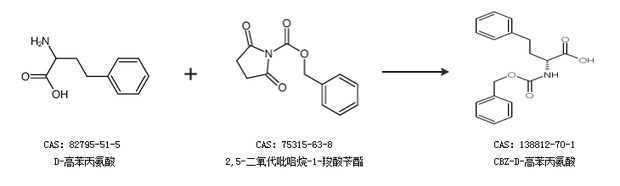 2.通過D-高苯丙氨酸和2,5-二氧代吡咯烷-1-羧酸芐酯合成CBZ-D-高苯丙氨酸