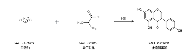 2.通過甲酸鈉和異丁酰氯合成金雀異黃酮,收率約90%;