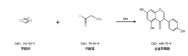 1.通過甲酸鈉和丙酰氯合成金雀異黃酮,收率約94%;