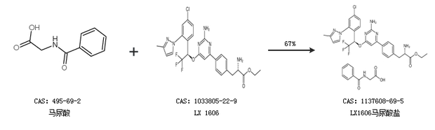 1.通過馬尿酸和LX 1606合成LX1606馬尿酸鹽,收率約67%;