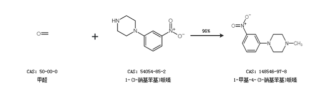 2.通過(guò)甲醛和1-(3-硝基苯基)哌嗪合成1-甲基-4-(3-硝基苯基)哌嗪,收率約96%;