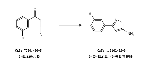 1.通過(guò)3-溴苯酰乙腈合成3-(3-溴苯基)-5-氨基異噁唑
