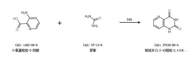 1.通過3-氨基吡啶-2-羧酸和尿素合成吡啶并[3,2-d]嘧啶-2,4(1H,3H)-二酮,收率約54%;