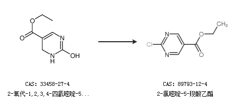2.通過2-氧代-1,2,3,4-四氫嘧啶-5-羧酸乙酯合成2-氯嘧啶-5-羧酸乙酯