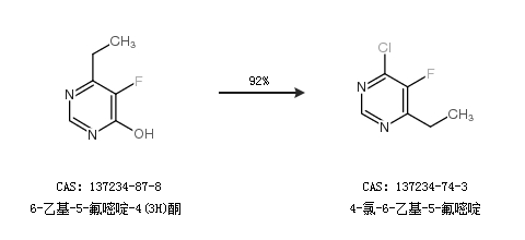 1.通過6-乙基-5-氟嘧啶-4(3H)酮合成4-氯-6-乙基-5-氟嘧啶,收率約92%;