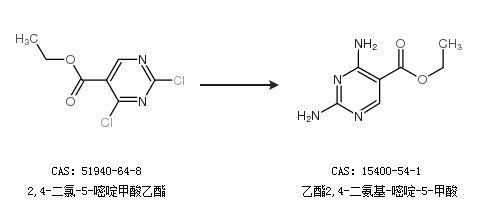 2.通過2,4-二氯-5-嘧啶甲酸乙酯合成乙酯2,4-二氨基-嘧啶-5-甲酸