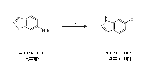 1.通過6-氨基吲唑合成6-羥基-1H-吲唑,收率約77%;
