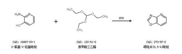 1.通過2-氨基-3-羥基吡啶和原甲酸三乙酯合成噁唑并[4,5-b]吡啶,收率約97%;